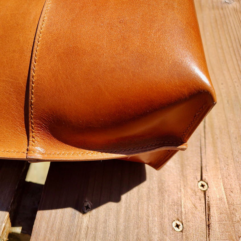 All parts cut, finished and stitched entirely by hand, no machines, using vegetable tanned leather and natural linen thread